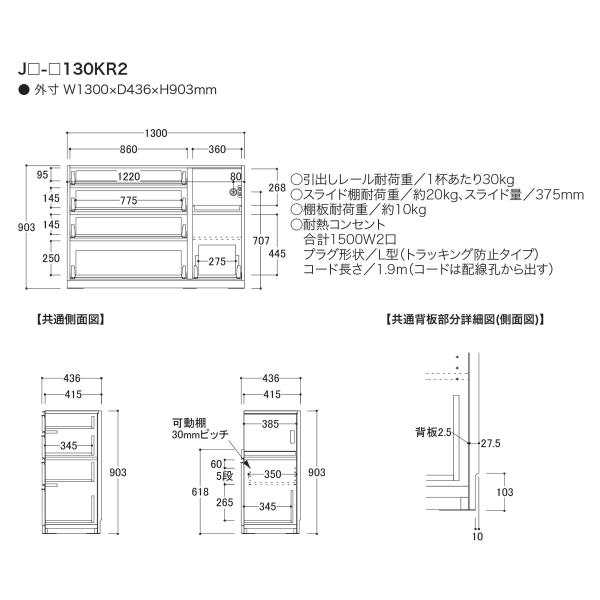 綾野製作所 JWシリーズ 食器棚 キッチンボード キッチンカウンター レンジ台 下台 幅130 奥行45 JW-130KR2 条件付き一部地域開梱設置無料
