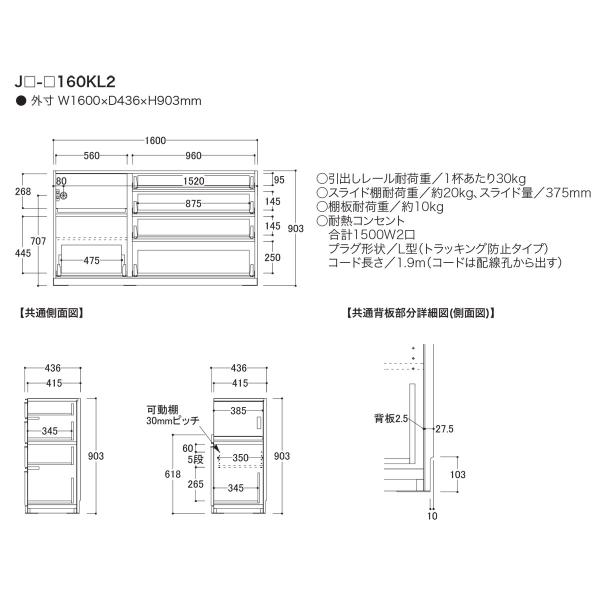 綾野製作所 JWシリーズ 食器棚 キッチンボード キッチンカウンター レンジ台 下台 幅160 奥行45 JW-160KL2 条件付き一部地域開梱設置無料