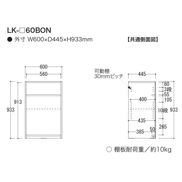 綾野製作所 LKシリーズ 食器棚 キッチンボード 下台 オープン棚 幅60 LK-60BON 条件付き一部地域開梱設置無料