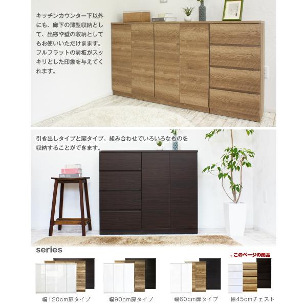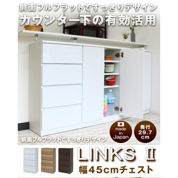 お子様のいる家庭でも安心して使えるカウンター下収納 食器棚 ロータイプ Links2 フルフラット 45C 45幅 奥行30cm チェスト 引き出し 薄型 日本製 完成品
