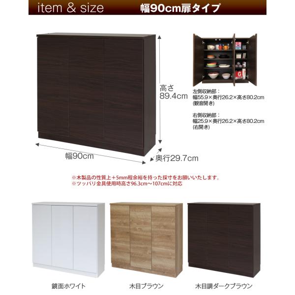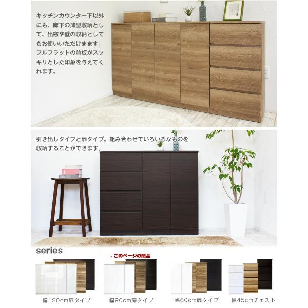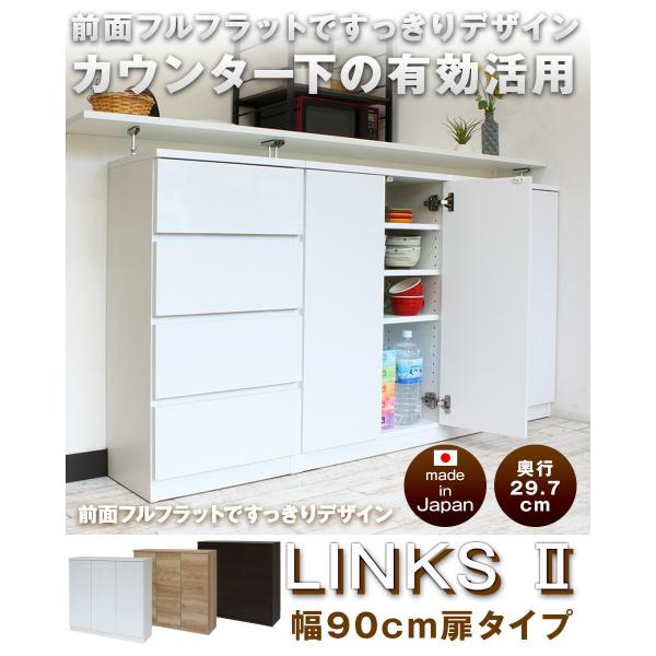 お子様のいる家庭でも安心して使えるカウンター下収納 食器棚 ロータイプ Links リンクス2 フルフラット 90D 90幅 奥行30cm 扉タイプ 薄型 日本製 完成品