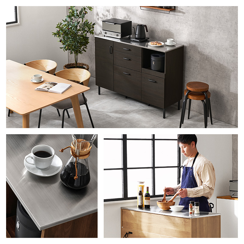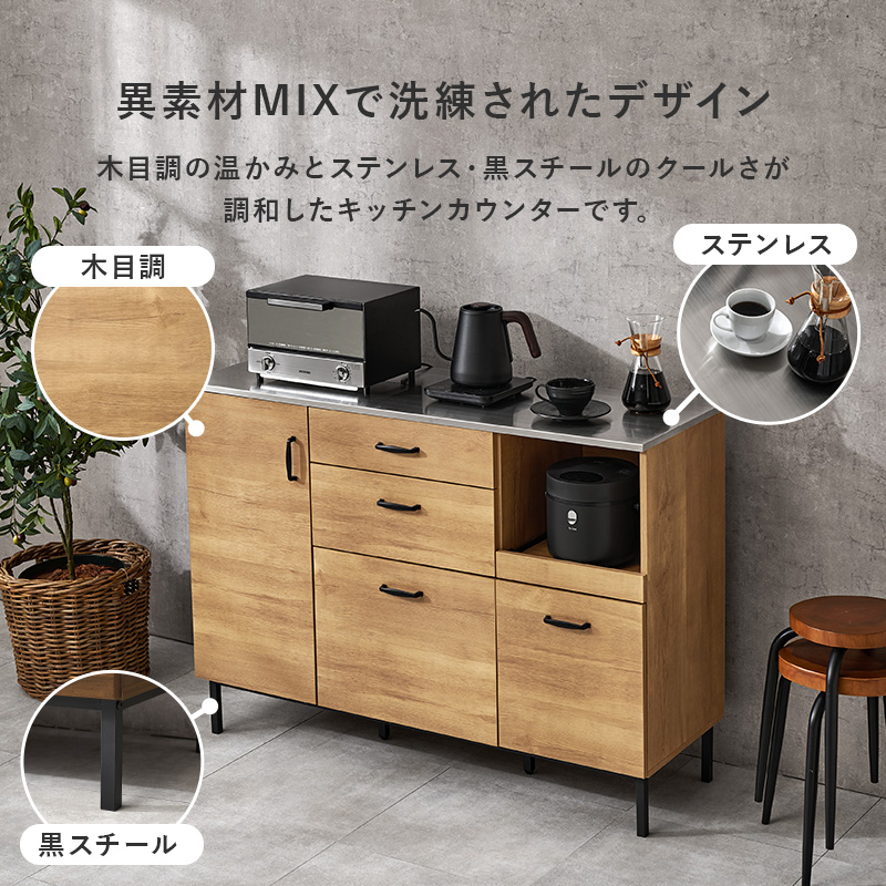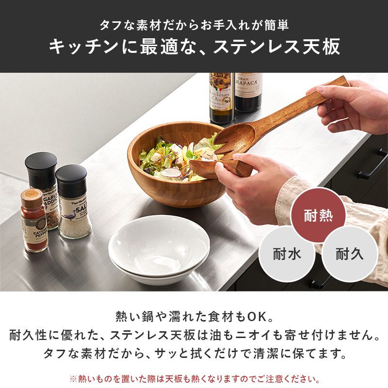 キッチンカウンター 120 下収納 ステンレス天板 間仕切り キッチンキャビネット キッチンボード 食器棚 ロータイプ レンジ台 キッチンラック 収納 ステンリア