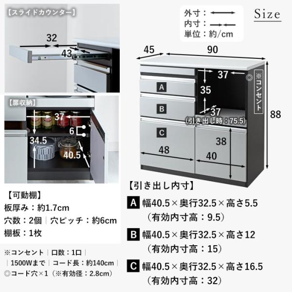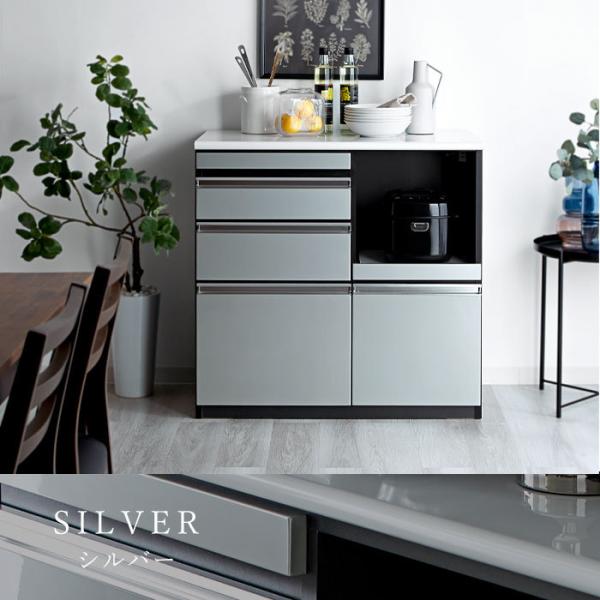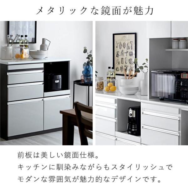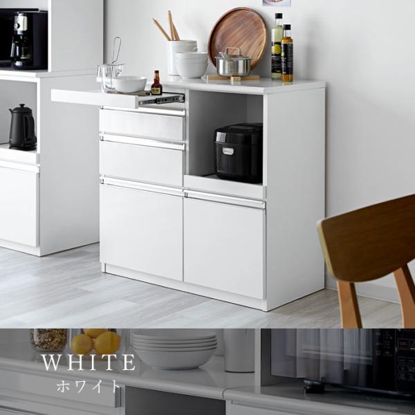 日本製 食器棚 レンジ台 キッチンカウンター 幅90 90 完成品 ロータイプ 引き出し 一人暮らし おしゃれ 大型レンジ対応 スライド棚 国産 組み立て不要 鏡面