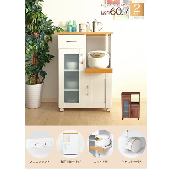 キッチンカウンター 食器棚 キッチンワゴン 炊飯器台 幅60cm おしゃれ 下収納 スリム コンパクト ロータイプ キャスター付き 人気 アウトレット価格