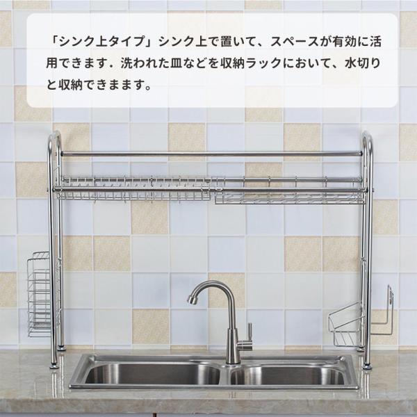 収納キッチン棚 ステンレス シンク上ラック すっきり収納 水切りラック キッチンラック 流し台 省スペース 頑丈