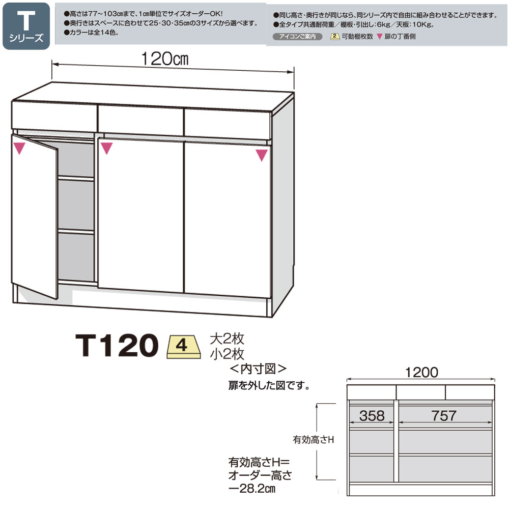 すきまくん カウンター下 収納 開き扉 幅120×奥行25×高さ60-103cm CSD-T120-25 すきまくんシリーズ カウンター下収納 セミオーダー 新生活 おしゃれ