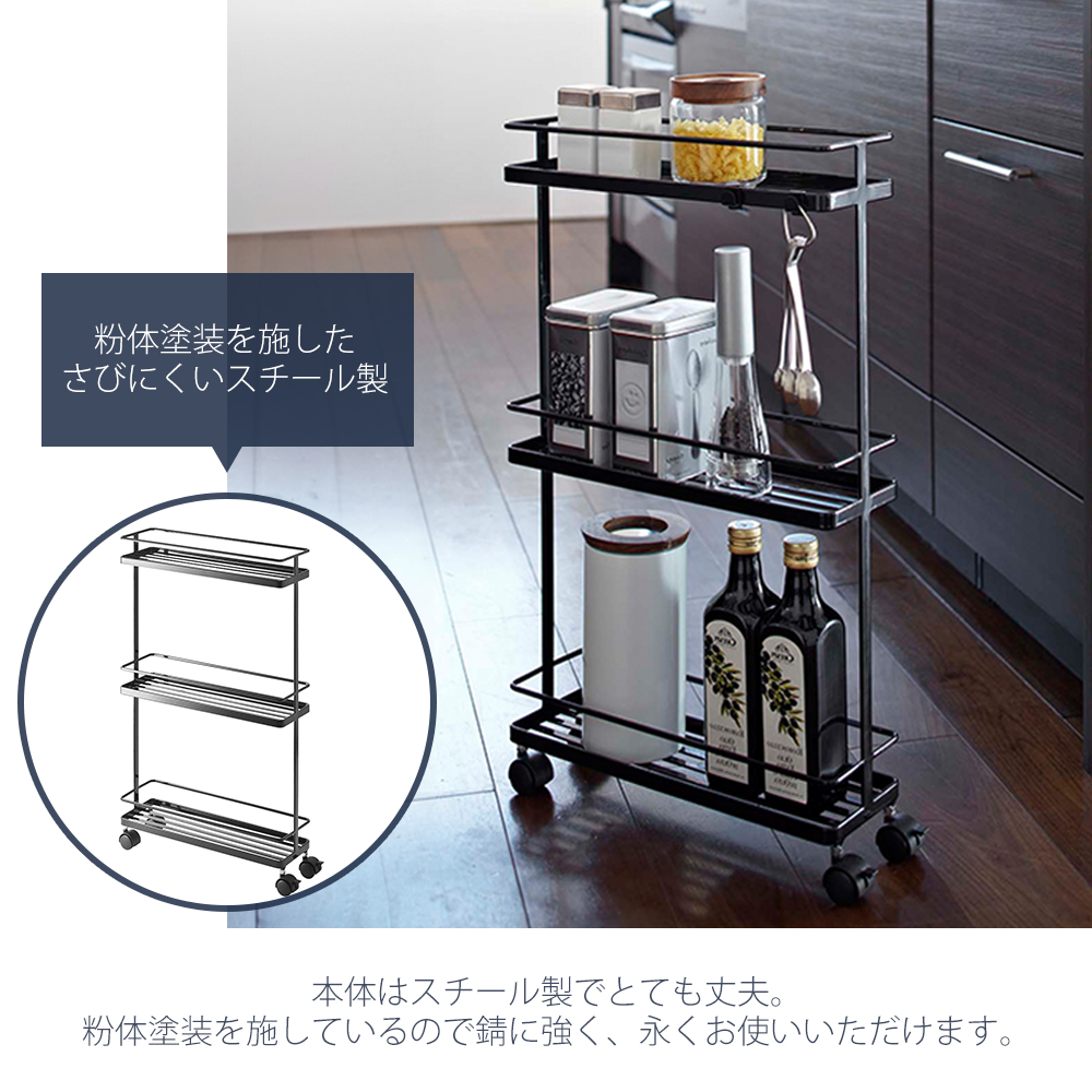 山崎実業 公式 タワー スリムキッチンワゴン tower キッチン ワゴン スリム キッチンカート フック キャスター付き 収納 7151 7152