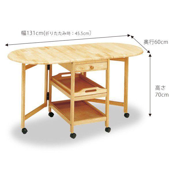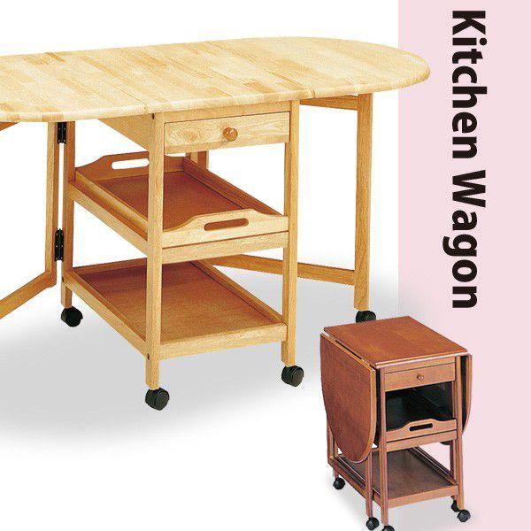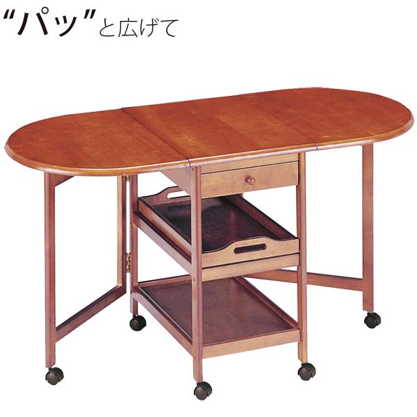 天然木を使った両側折りたたみキッチンワゴン バタフライワゴン キャスター付 ナチュラル ブラウン