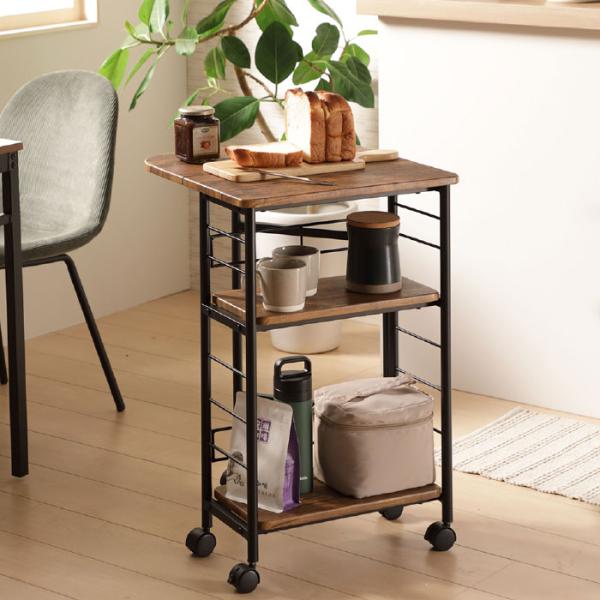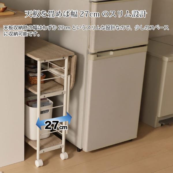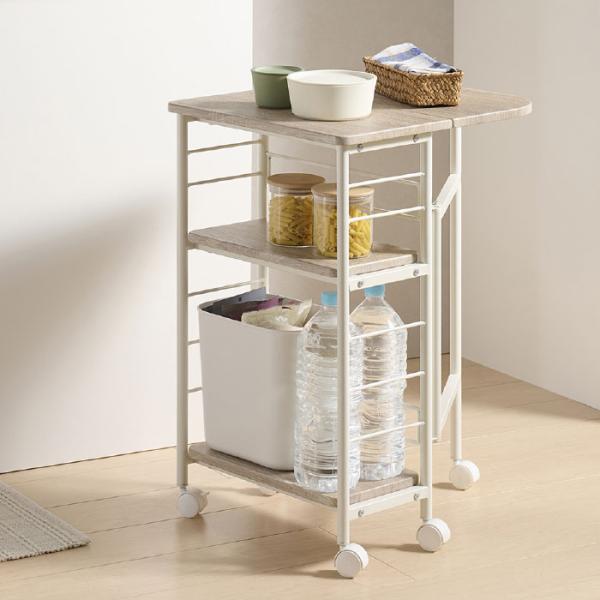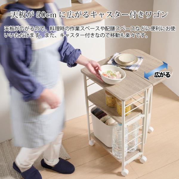 バタフライワゴン キャスター付き キッチンワゴン 天板拡張 伸縮 ワゴン 作業台 キッチン収納 移動式テーブル 隙間収納 オープンラック 幅27cm VBW-50 スリム