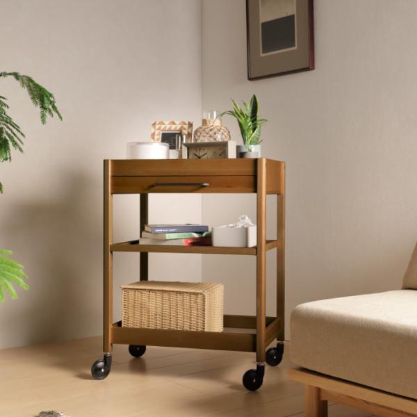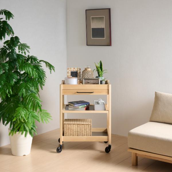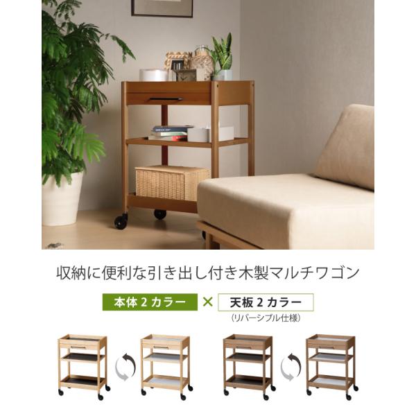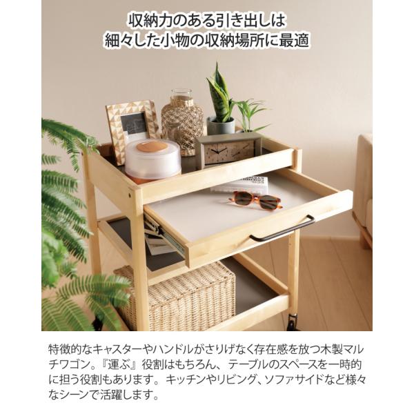 木製マルチワゴン 引き出し付き 3段 キッチンワゴン キャスター付き 天板付き マルチテーブルワゴン キッチン収納 リビング収納 隙間収納 すきま収納 隙間ラック