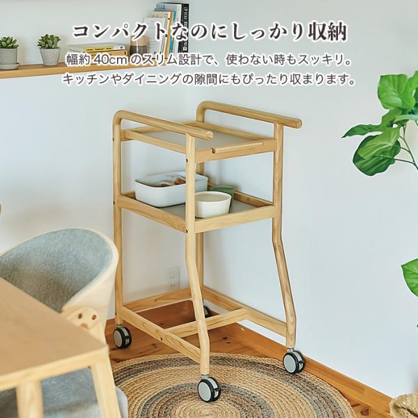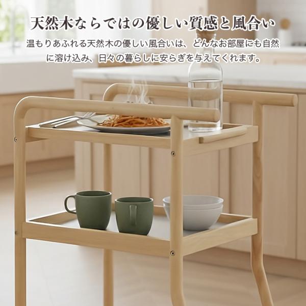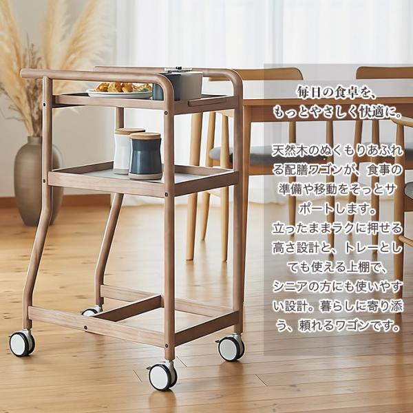 天然木 配膳ワゴン トレー・キャスター付き 高さ90cm 幅40cm 北欧風 キッチンワゴン 介護 シニア向け 省スペース 調理補助 サイドテーブル 暮らし支えるワゴン