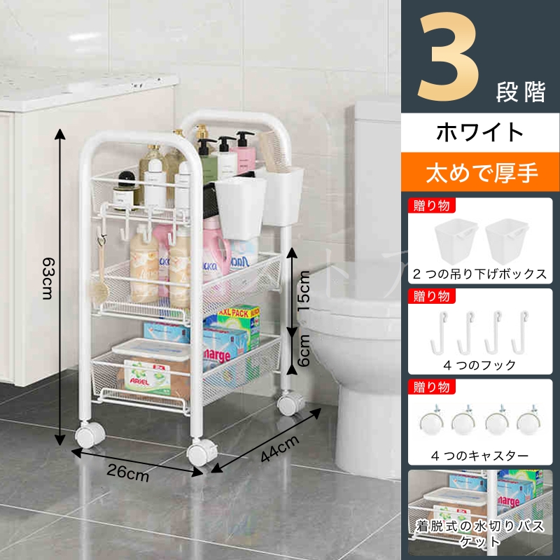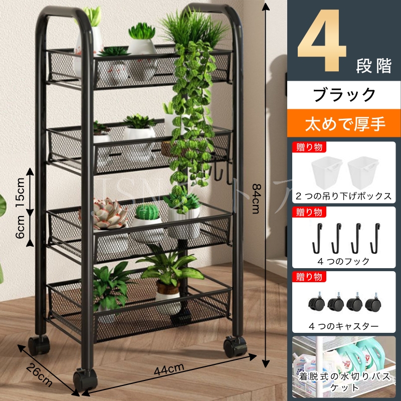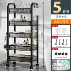 キッチンワゴン キャスター付き 5段収納ラック 隙間収納 360°移動可 小物収納 メタルラック 組み立て簡単 収納カート バスケットラック メッシュタイプスチール