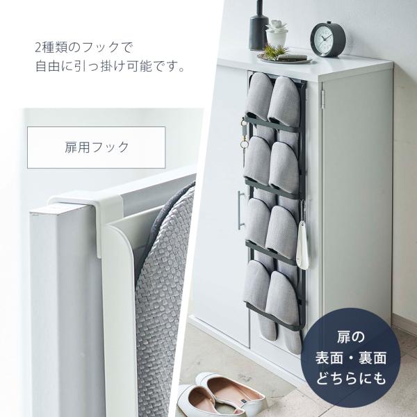 山崎実業 公式 タワー 下駄箱扉&引っ掛け式 スリッパラック tower スリッパホルダー 4足 靴べら フック付き 靴箱扉 玄関収納 4894 4895