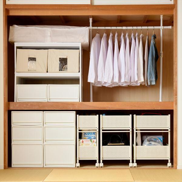 押入れ 突っ張り ハンガーラック スリム WJO-715 頑丈 たてよこ伸縮 押入れ収納 クローゼット 押入れハンガー つっぱり 山善 YAMAZEN
