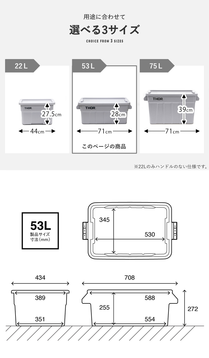 収納ボックス 53L THOR LARGE TOTE DC フタ付き 幅70.8×奥行43.4×高さ27.2cm ( 収納 ボックス ケース 収納ケース ふた ふた付き )