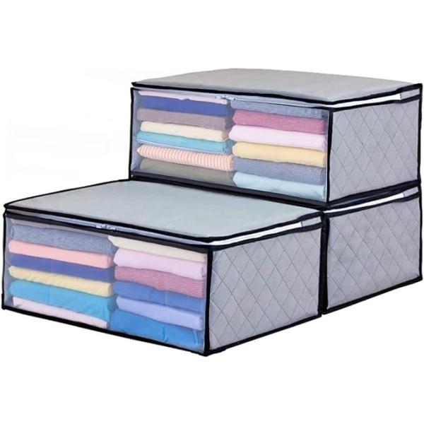 活性炭採用 活性炭消臭 収納ケース 3枚組 通気性の良い不織布製 消臭保管 洋服 収納ボックス 衣装ケース 収納袋 クローゼット