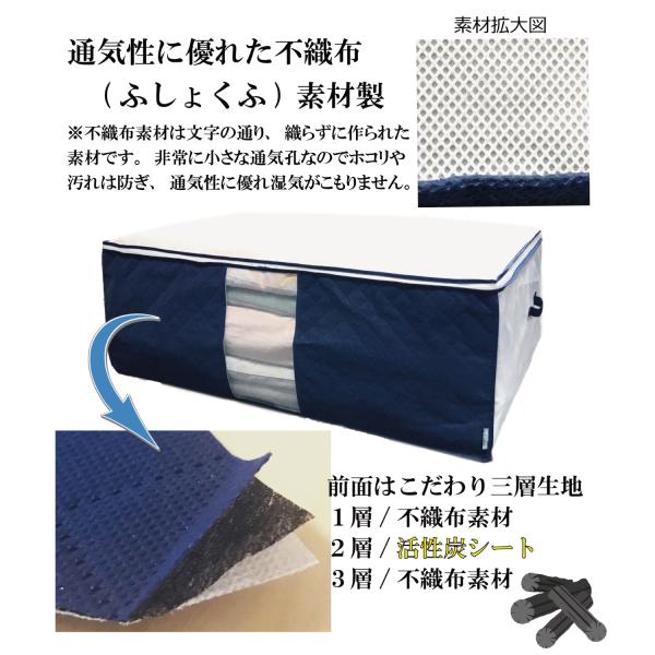 布団収納袋 特大 2枚組 布団袋 前面 活性炭シート入 収納袋 掛け布団 敷き布団 をまとめてスッキリ 持ち手 透明窓付 通気性の良い 厚手 不織布製 折りたためる