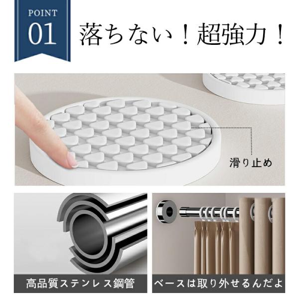 強力突っ張り棒 つっぱり棒 ステンレス 強い負荷 ドリル不要 35-250cm 伸縮 クローゼットロッド シャワーカーテンロッド 物干し竿 洗濯干し 布団干し 室内 屋外