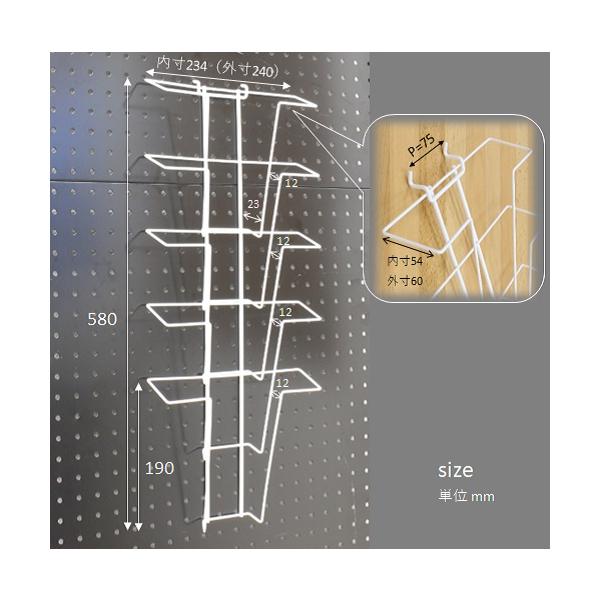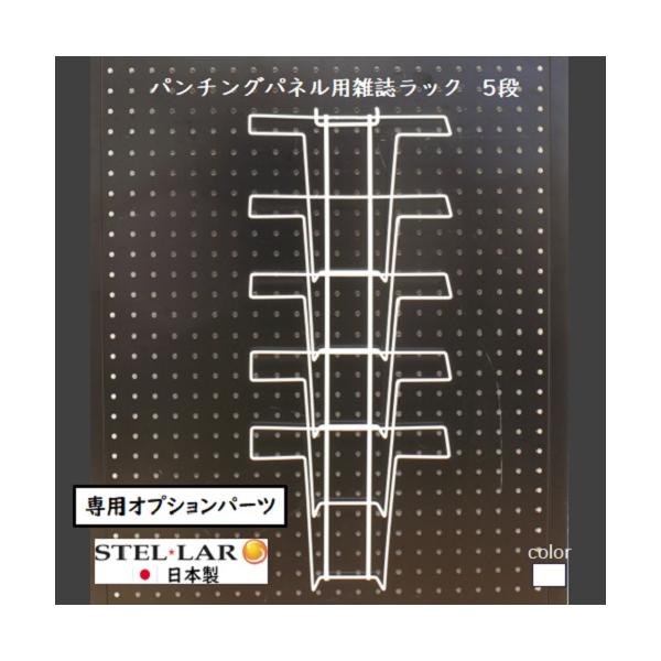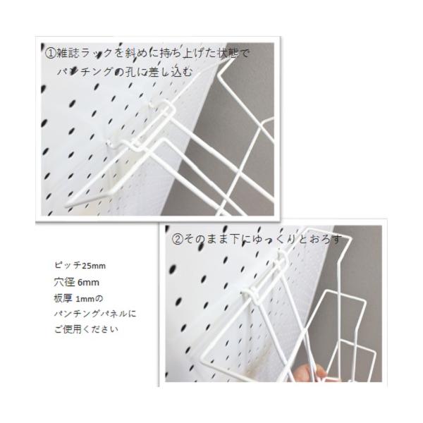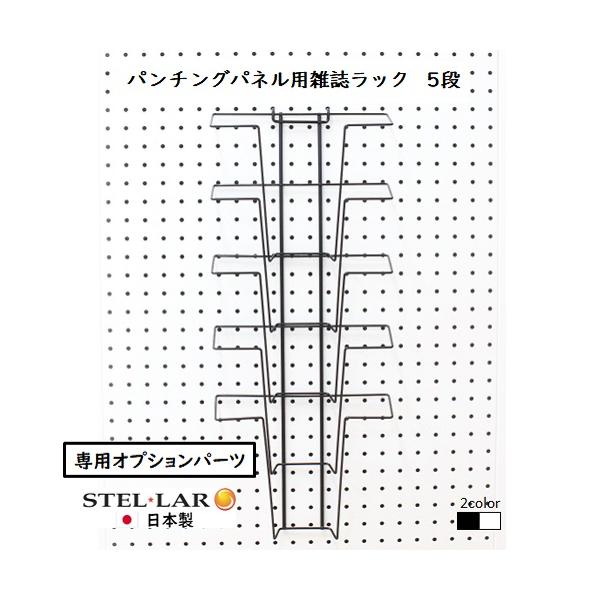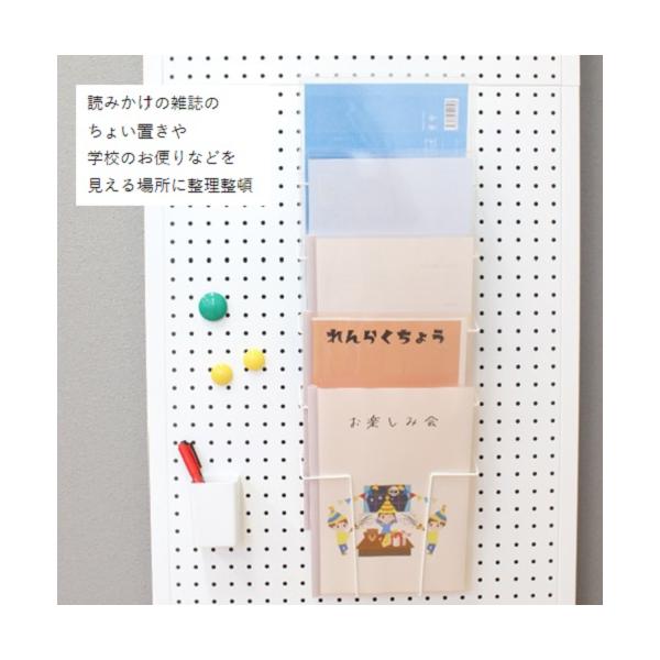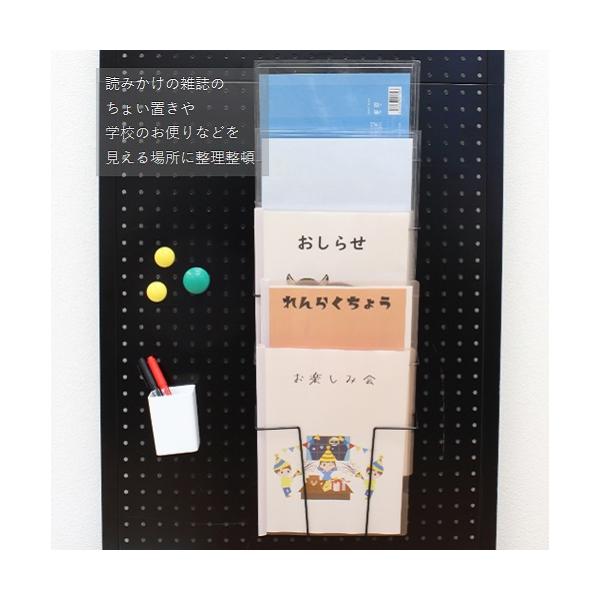 パンチングパネル用雑誌ラック5段 A4 雑誌 パンフレット プリント整理 小冊子 壁面収納 ポケット 有孔ボード カタログ スチール 白/黒 54-WHITE/-BLACK