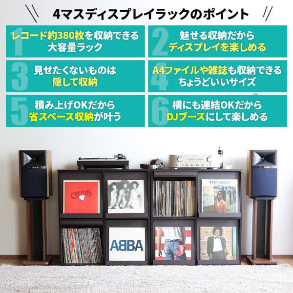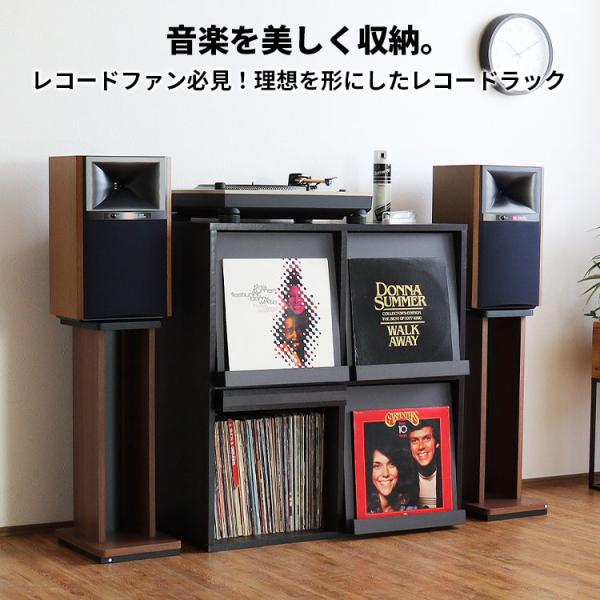 レコードラック LPラック LPレコード 収納 棚 木製 80cm フラップ扉 2段 レコード収納 ディスプレイラック 本棚 キャビネット