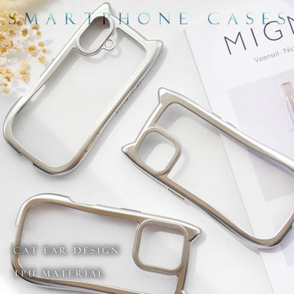 iPhone17 iPhone16 15 14 13 Plus Pro ProMax Air ケース 猫耳 シルバー クリア 透明 iPhoneケース ネコミミ かわいい オシャレ ソフト