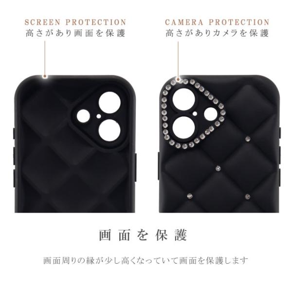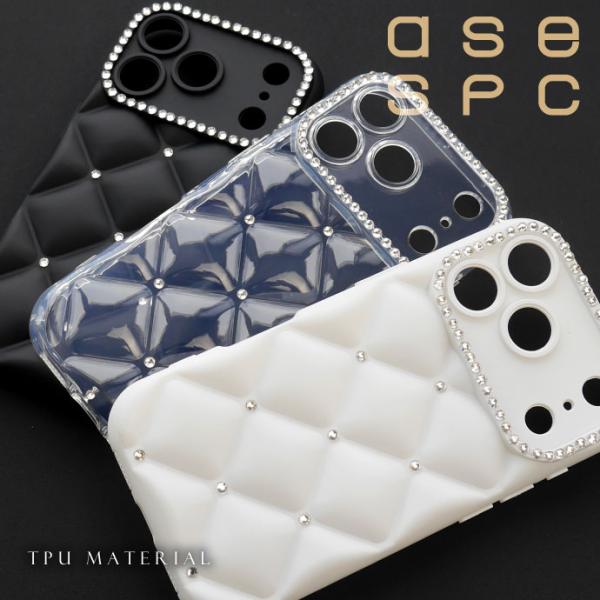 iPhone17 iPhone16 15 Plus Pro ProMax 16e 17e Air ケース ラインストーン付 キルティングデザイン TPU ソフト オシャレ かわいい