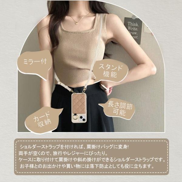 【即日発送】ショルダー付き スマホケース ミラー付き カード収納 ベルト付き 耐衝撃 iPhone17/17e/16/16e/15/14/13/12 Pro Max・Plus対応 おしゃれ 韓国風