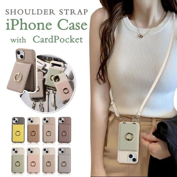 【即日発送】ショルダー付き スマホケース カード収納 ベルト付き 耐衝撃 iPhone17/17e/16/16e/15/14/13/12 Pro Max Plus対応 ストラップ付き おしゃれ 韓国風
