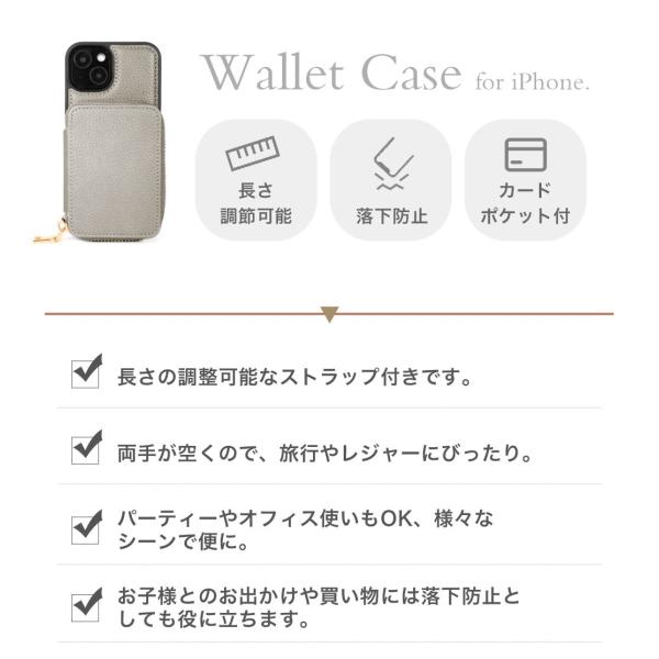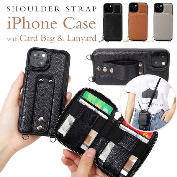 【即日発送】iPhone14/14Pro/13/12/12Pro対応 ショルダー付きスマホケース 背面手帳型 カード収納 取り外し可能 おしゃれ 大人かわいい