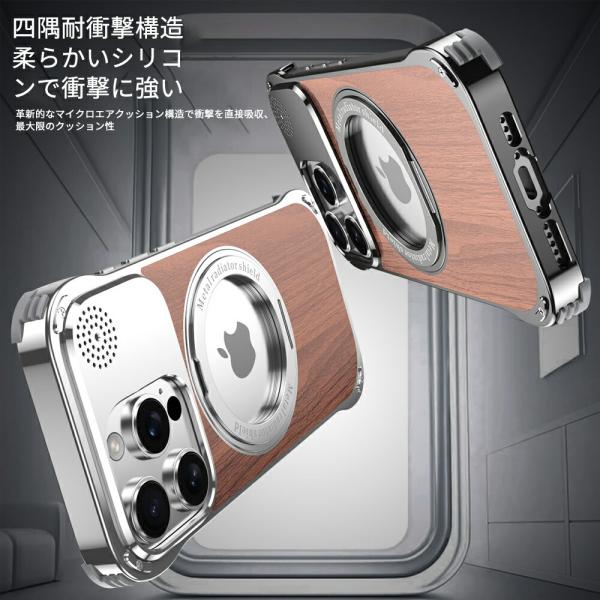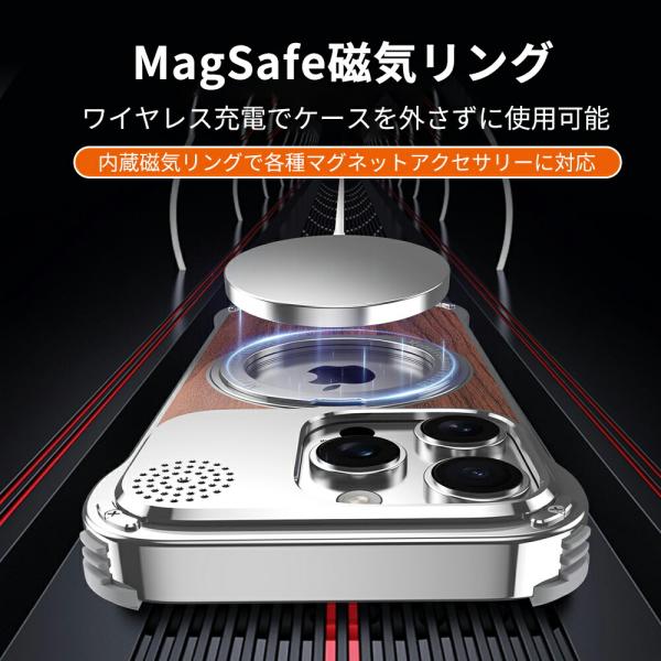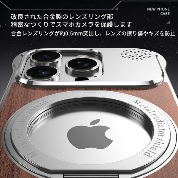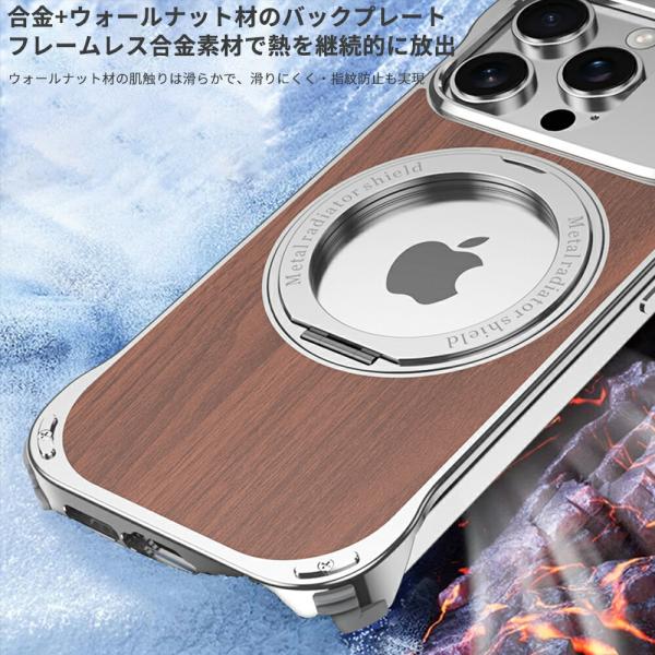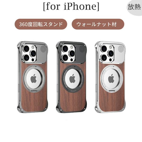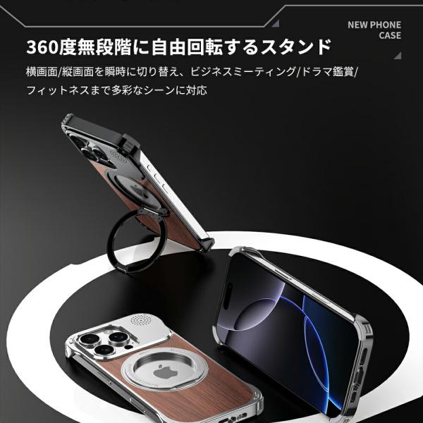iPhone16 ケース iPhone16Pro ケース iPhone15 ケース iPhone15Pro ケース magsafeリング スタンド機能 16ProMax iPhone14 14Pro iPhone13 13Pro 合金 木 放熱