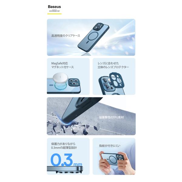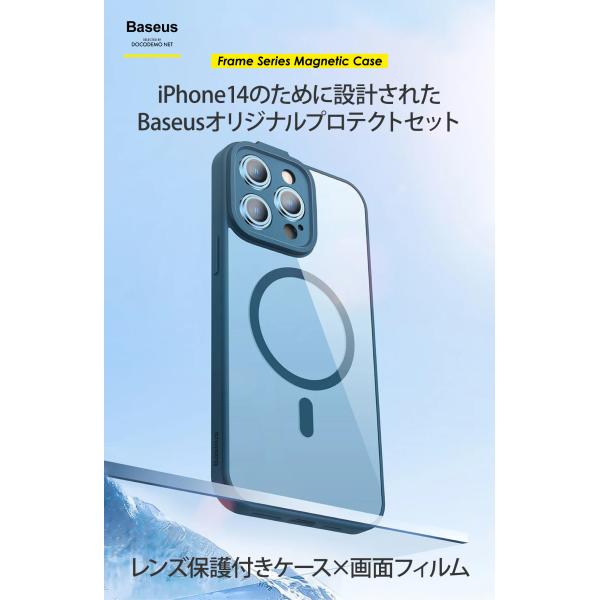 Baseus iPhone14 ケース クリア おしゃれ 耐衝撃 フィルム レンズ保護 クリアケース MagSafe 対応 人気 薄型 軽量 iphoneカバー 指紋防止 【ARJT】
