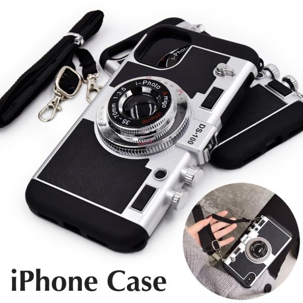 ボーナスストア対象 カメラ型 iPhone ケース ブラック シルバー 肩掛け iphone 16 15 14 13 pro max 12 8 7 se2 ストラップ付き アイフォン カバー