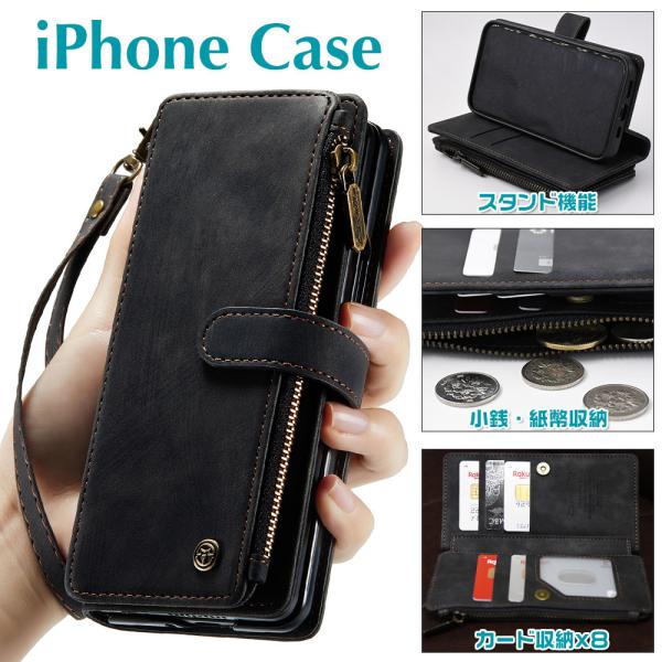 期間限定セール 財布一体型 アイフォン ケース レザー ブラック iphone 14 pro max 13 12 mini 8 7 SE3 スマホ 小銭収納 黒 革