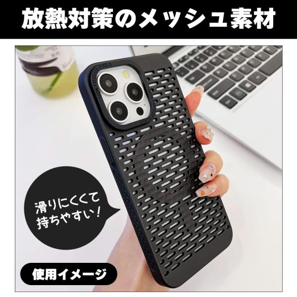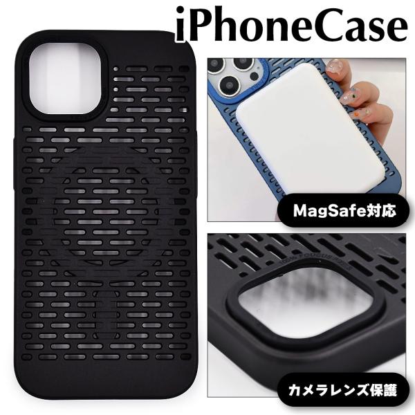 ボーナスストア対象 アイフォン ケース MagSafe対応 メッシュ加工 放熱仕様 ブラック ワイヤレス充電可 iphone 16 15 pro max 14 13 レンズ保護 防滑