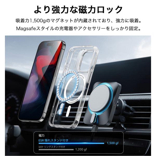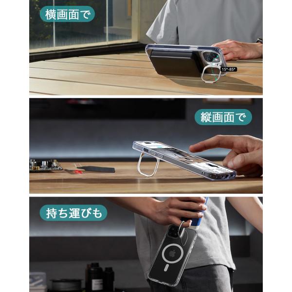 ESR iPhone 15 ケース iPhone 15Pro 15Plus 15ProMax ケース マグセーフ クリア 米軍MIL規格 磁気ワイヤレス充電 MagSafe対応 隠れスタンド スマホケース