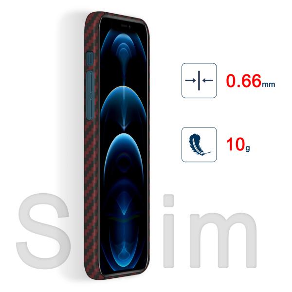iPhone12 ケース アラミド繊維 カーボン調 耐衝撃 極薄 超軽量 12Pro 12ProMax 12mini ワイヤレス充電対応 赤黒 レッド ブラック/グレー