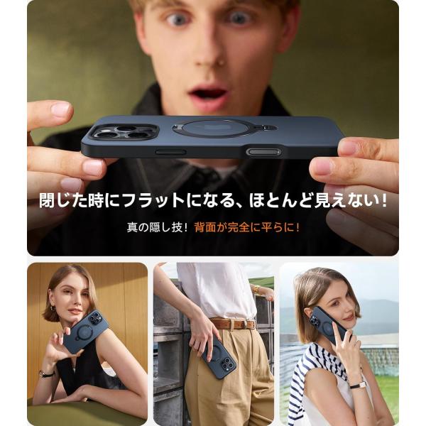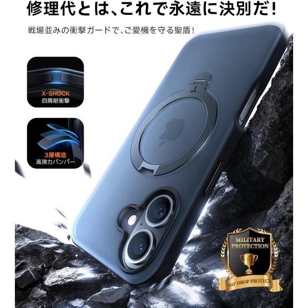 iPhone16 ケース TORRAS 正規品 リング付き スタンド MagSafe対応 マグネット搭載 半透明 マット ブラック Ostand Spin