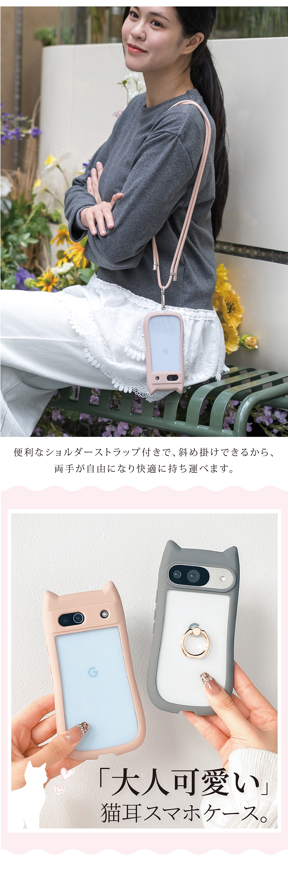 猫耳スマホケースGoogle Pixel 10a 10 Google pixel 9a pixel 9 9pro googlePixel 8a ケースショルダー ピクセルgoogle pixel7a クリア リング付き 猫耳ケース