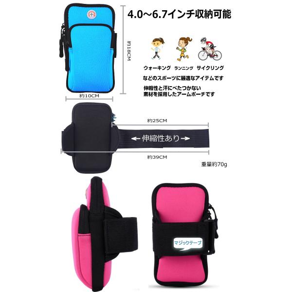 スポーツアームバンド 6.7インチまで アームポーチ ランニング ジョギング ケース スマホ対応 防水防汗 iPhone アンドロイド 運動 スマホマルチケース