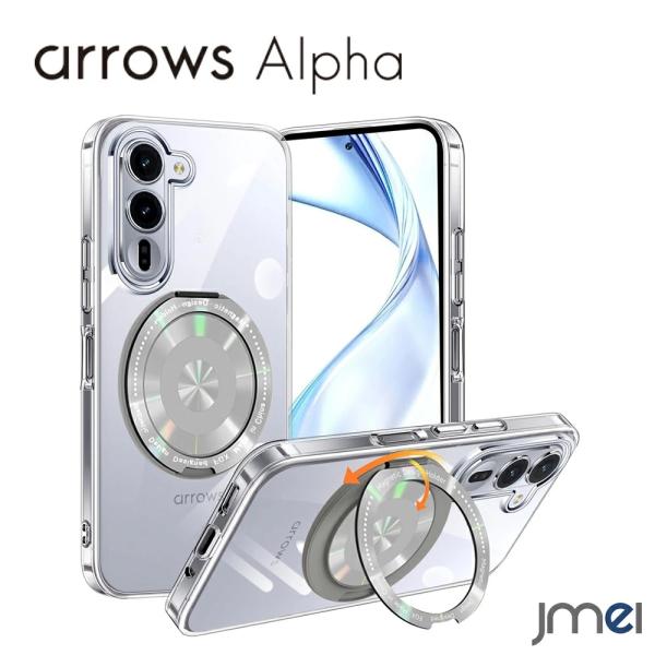 arrows Alpha F-51F ケース クリア リング付 360°回転スタンド 耐衝撃 MagSafe対応 薄型 軽量 透明 TPU 車載ホルダー マグセーフ対応 アクセサリー 2025 docomo