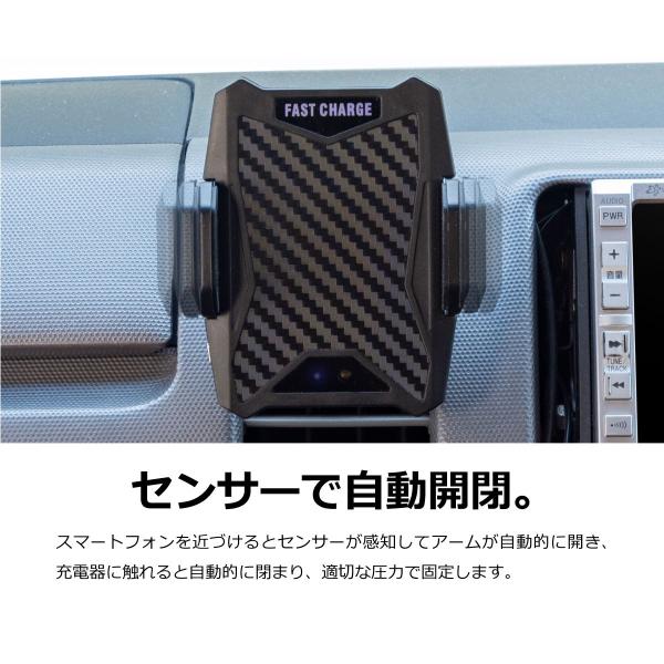スマホ 充電器 ワイヤレス 置くだけ 急速 車載用 qi互換 自動開閉 車載ホルダー スマートフォン _60036