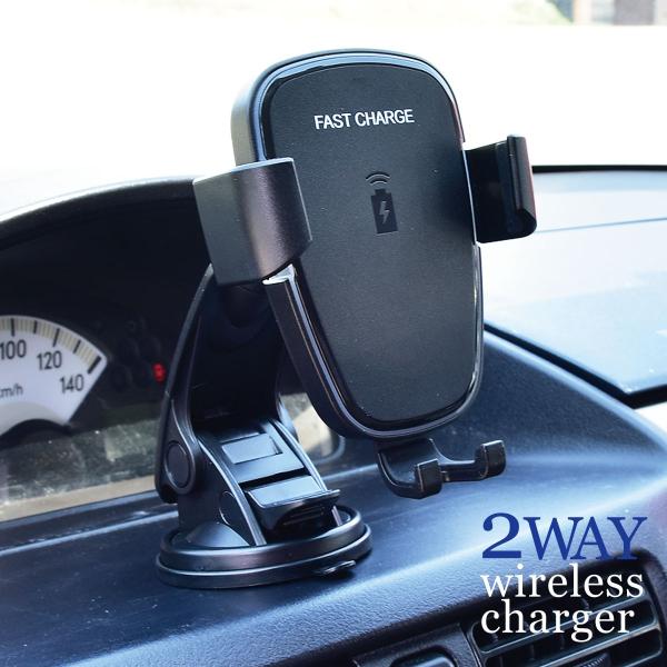 スマホ 充電器 ワイヤレス 車 急速 スマホスタンド 急速充電器 Qi規格対応 iPhone 置くだけ充電器 車載用 吸盤 USB スマホホルダー _84125