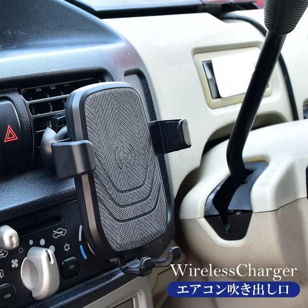 スマホ 充電器 ワイヤレス 車 急速 スマホスタンド 急速充電器 Qi iPhone8 iPhoneX android 置くだけ充電器 エアコン吹き出し口 車載用 _84126