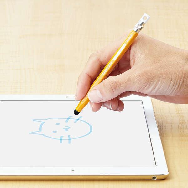 エレコム スマートフォン・タブレット用 6角鉛筆タッチペン ストラップホール付き 超感度タイプ ペン先交換可能 イエロー P-TPENCEYL 在庫処分