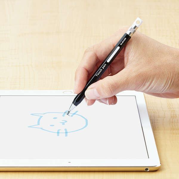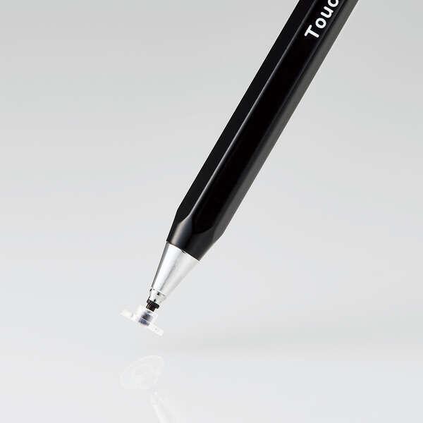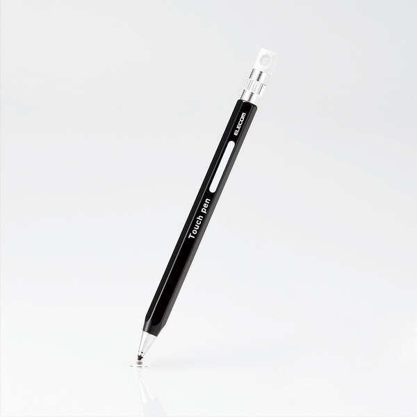 エレコム スマートフォン・タブレット用 6角鉛筆タッチペン ストラップホール付き ディスクタイプ ペン先交換可能 ブラック P-TPENDEBK 在庫処分