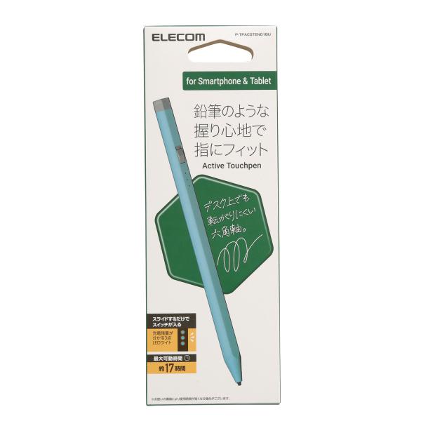 エレコム 充電式 アクティブ スタイラス タッチペン 鉛筆型 六角 リチウム充電式 汎用 磁気吸着 USB-C充電 ブルー P-TPACSTEN01BU 在庫処分