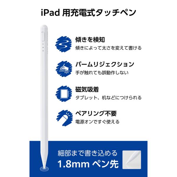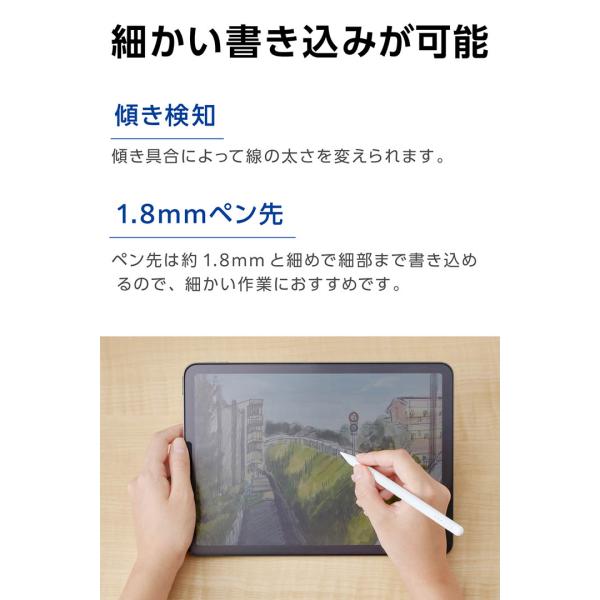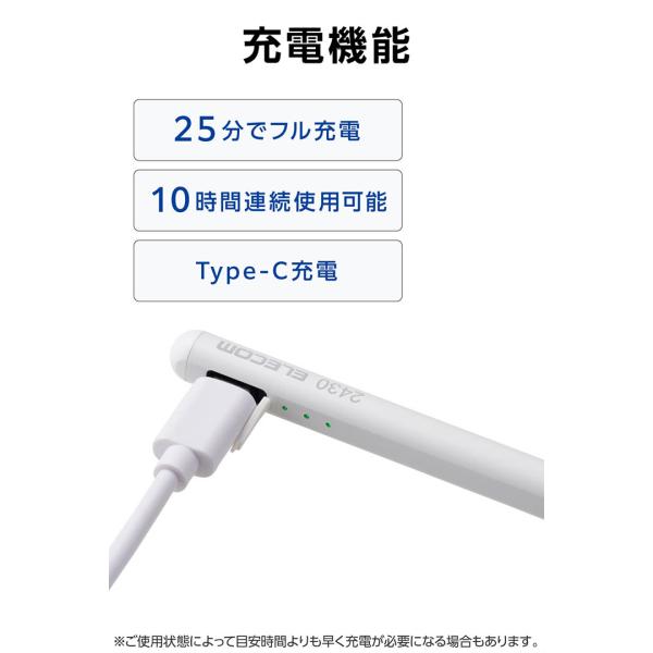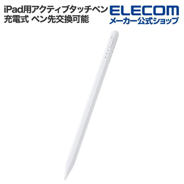 エレコム iPad用 アクティブタッチペン 充電式 傾き検知 磁気吸着 USB-C充電 ペン先交換可能 ホワイト P-TPACSTAP06WH 在庫処分