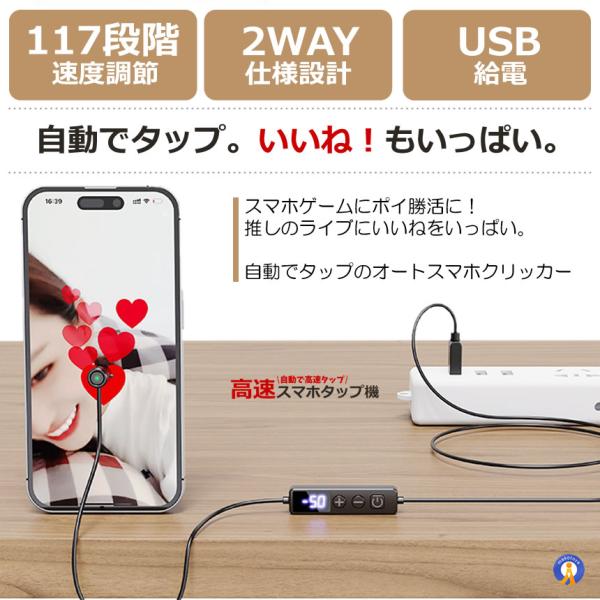 自動でタップ スマホ オート タップ 117段階 速度 調節 高速 クリッカー TikTok インスタ いいね ランキング USBTAB