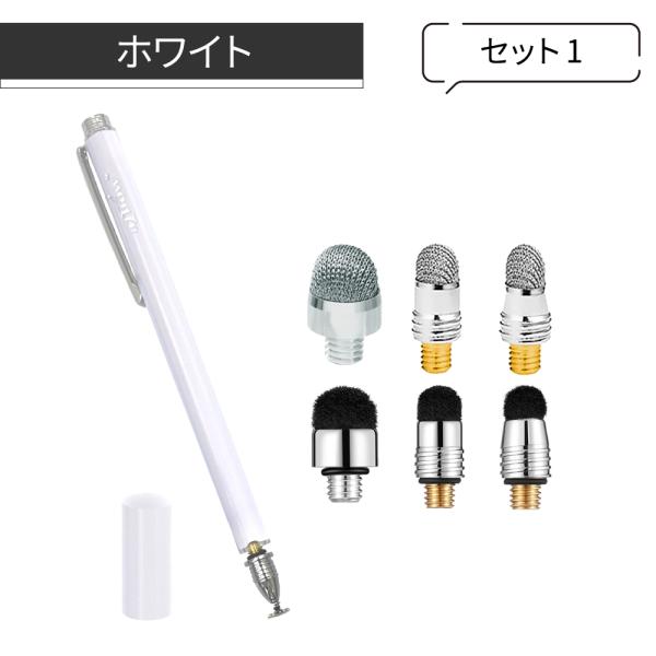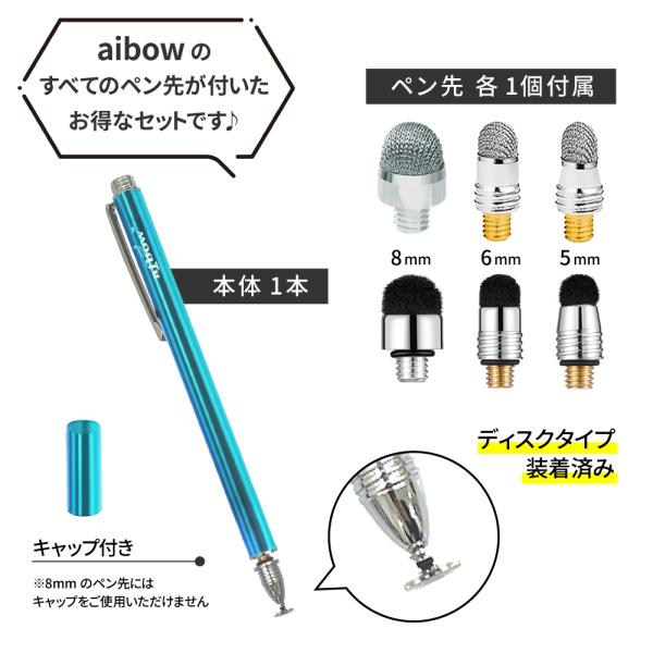 aibow タッチペン スタイラスペン iPad iPhone スマホ Android タブレット Switch 対応 キャップ付き本体 1本+ペン先6個 5mm 6mm 8mm ディスク お試しセット