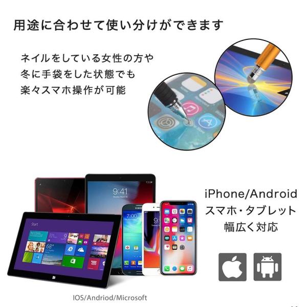 タッチペン 極細 両側 iPhone iPad Android対応 スマホ タブレット スタイラスペン 細い イラスト デザイン アプリ ゲーム 液晶用ペンシル